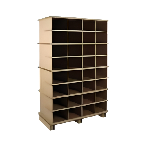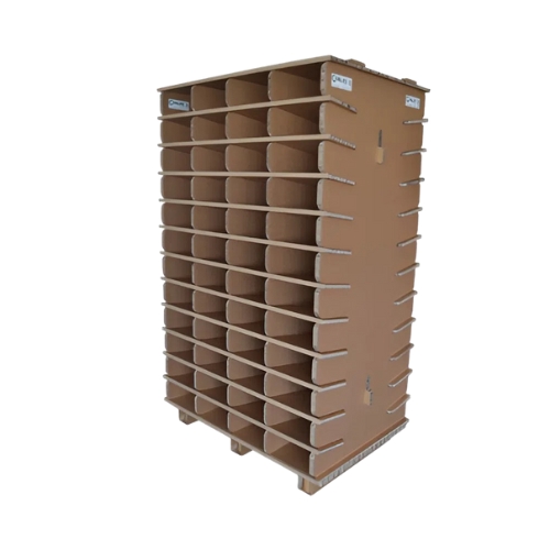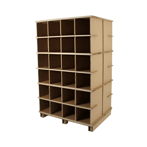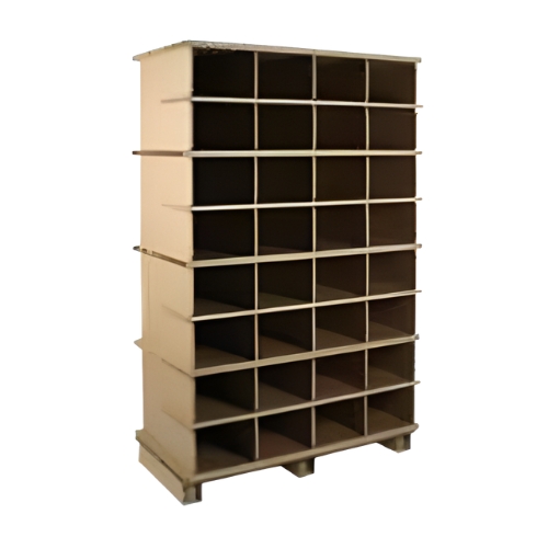 Durable paper board constructed using honeycomb cell technology results in pick-faces that are strong enough to hold up to 1100 lbs in each PALLITE PIX storage unit