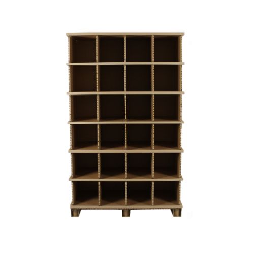 Durable paper board constructed using honeycomb cell technology results in pick-faces that are strong enough to hold up to 1100 lbs in each PIX storage unit